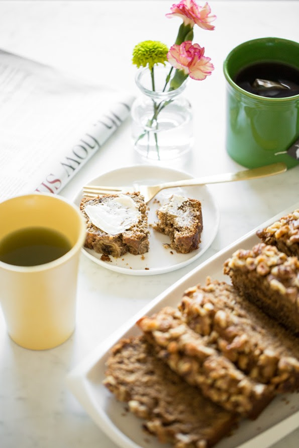 I’ve heard from so many of you who have made and loved my vegan banana bread—the recipe has almost 650 comments to date! I can’t say I blame you…it’s a big winner in our house as well (a loaf barely makes it through the day) and requires just 10 minutes of prep work, too. Just be sure to get a head start on this recipe if you’re serving it for brunch as you’ll need an hour for the loaf to bake and cool. This recipe will always have a special place in my heart because I developed and photographed it while 9 months pregnant with Arlo!