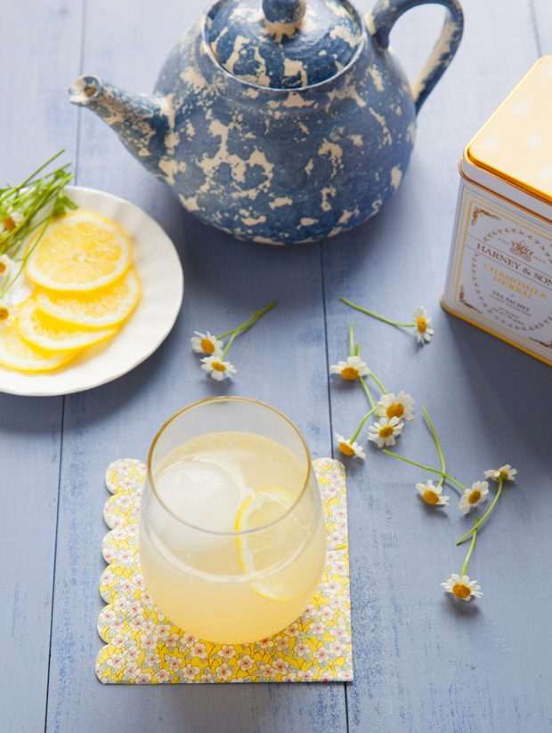 This cocktail is perfect for laid back spring and summer afternoons and evenings, for lounging with good friends and good music, for porch sitting on a lovely evening, or even for a nice quiet evening with a great book. With gin, lemon, and honey, it’s in the bee’s knees family, but the addition of chamomile tea and orange bitters to this version add complexity and interest that make this concoction especially sippable and delicious. Though it is pictured here with an ice sphere, I ultimately decided I liked this best over crushed ice. Don’t skip the orange bitters, they really make a difference. Cheers, and happy weekend friends!