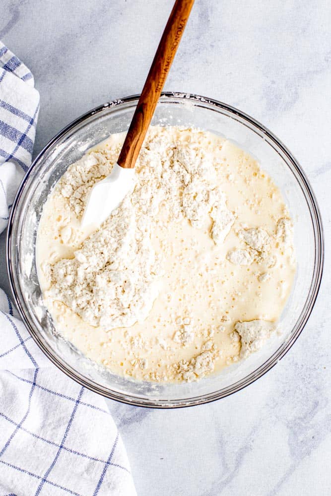 - Pour the wet ingredients into the dry ingredients and mix until it forms into a dough. Stir in any add-ins.
